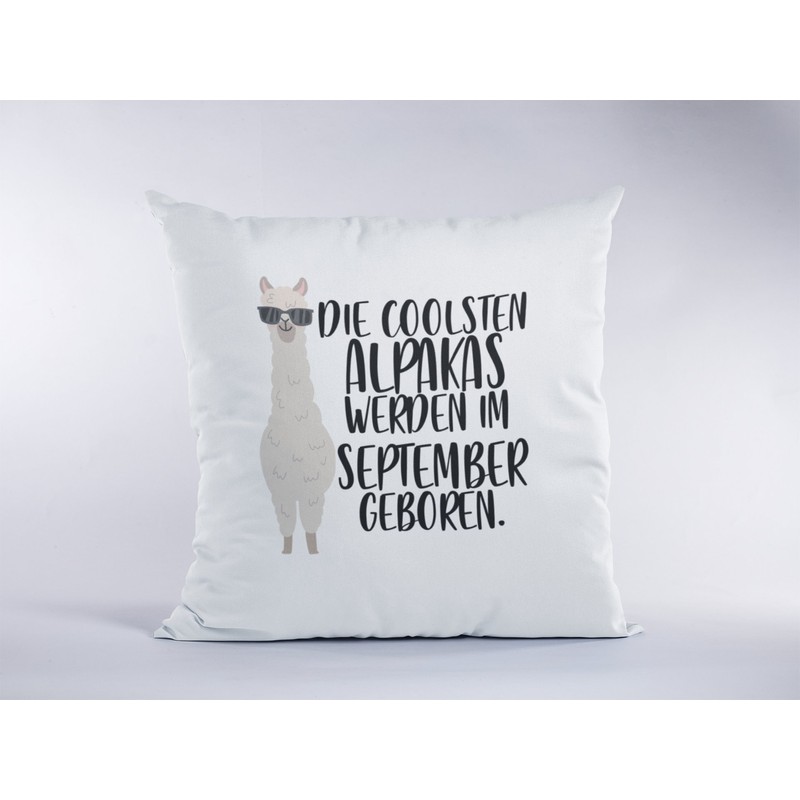 LIEBTASTISCH - Cushion cover - "The coolest alpacas are born in September." - 40 cm x 40 cm - decorative cushion - high quality - white - gift (September)