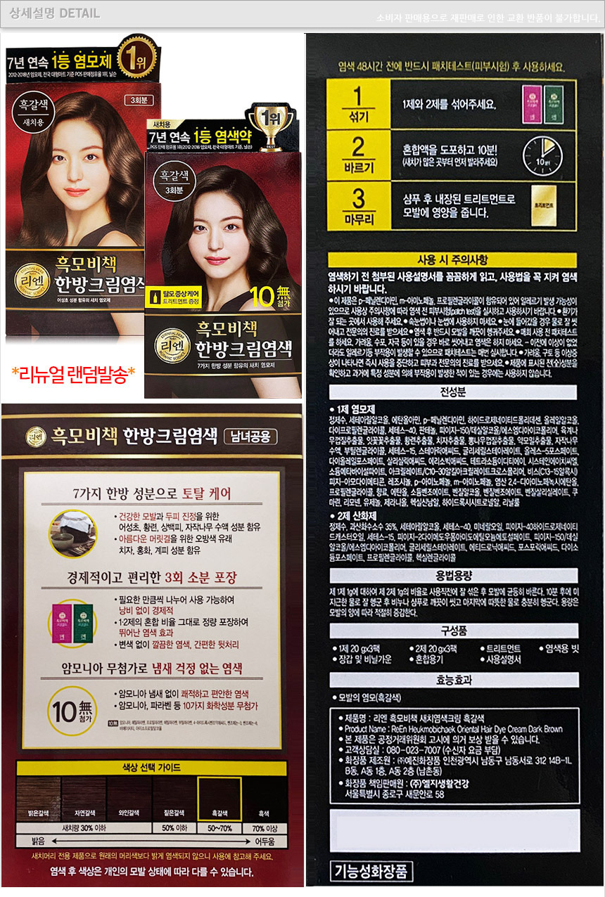 Lien black hair dye cream dark brown / 리엔 흑모비책 염색크림 흑갈색