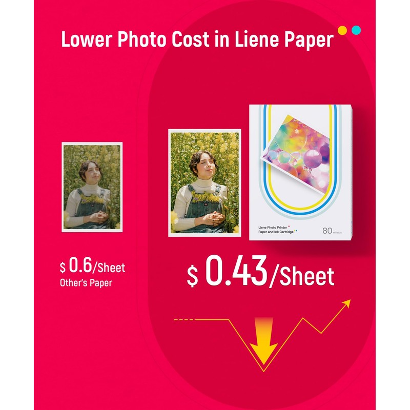 • [80 Sheets of Photo Paper Printing] The photo papers run out when printing photos at the party? Liene upgrades the capacity of photo paper and ink again. Our refill pack includes a total of 80 sheets of photo paper & 2 ink cartridges refill. For ease of use, one cartridge combines three RGB primary colors. All you need to do is install the ink cartridges in the kit into the printer. Plus, one cartridge supports 40 photos. Never again will you be embarrassed by the lack of paper in the printing.
