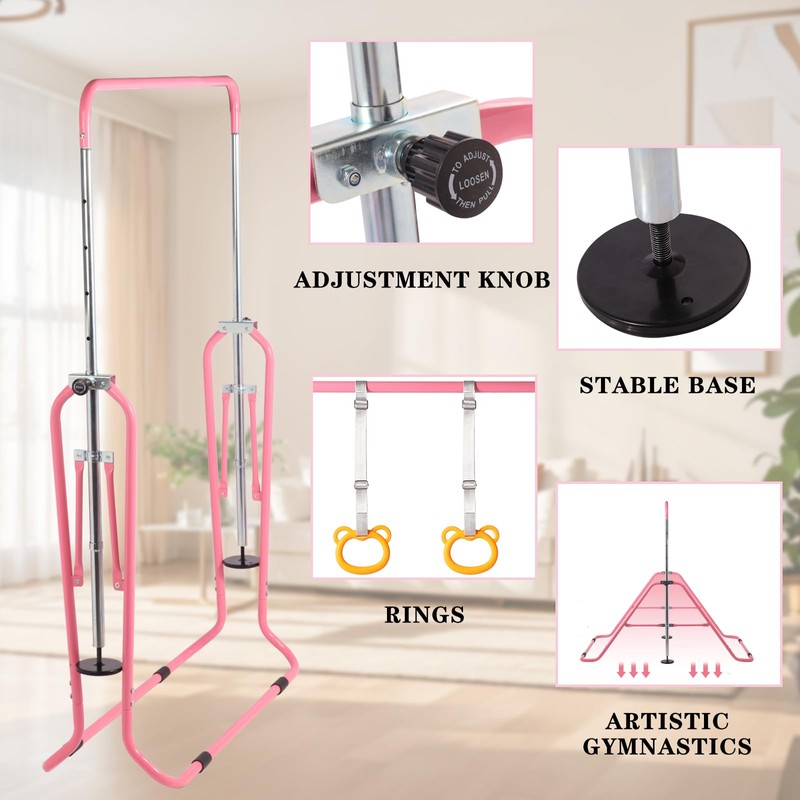 - SAFETY COMES FIRST: This gymnastics training bar product is very safe and has good stability. It adopts a triangular structure design to ensure the stability of the entire structure, and the chassis below has strong grip ability.