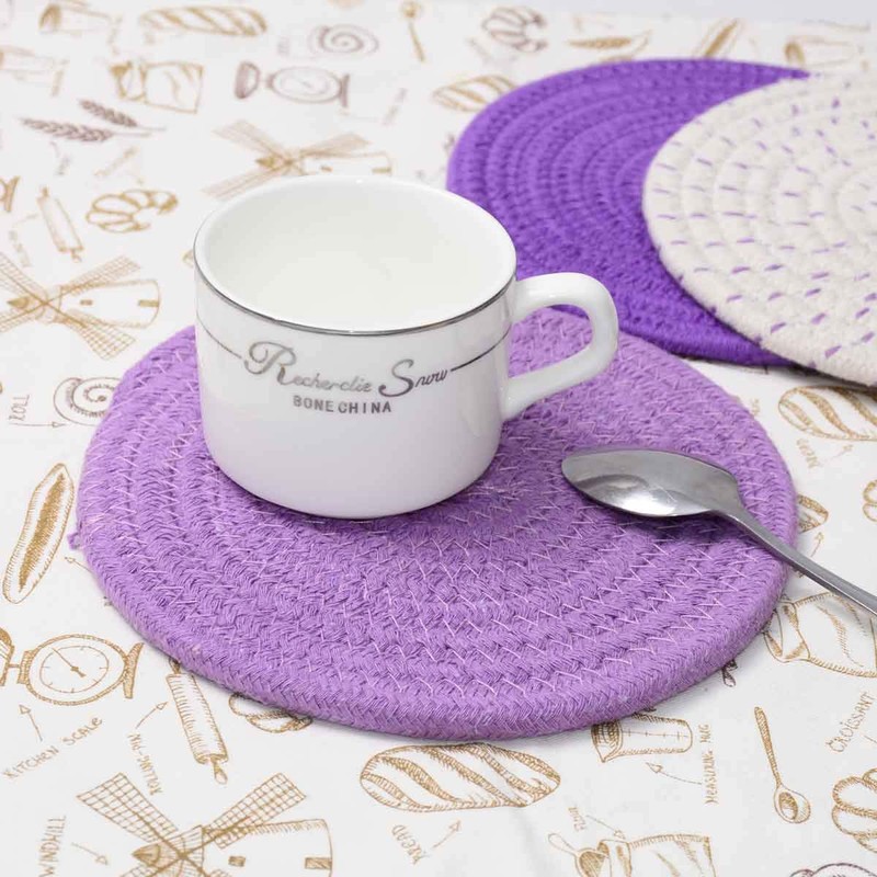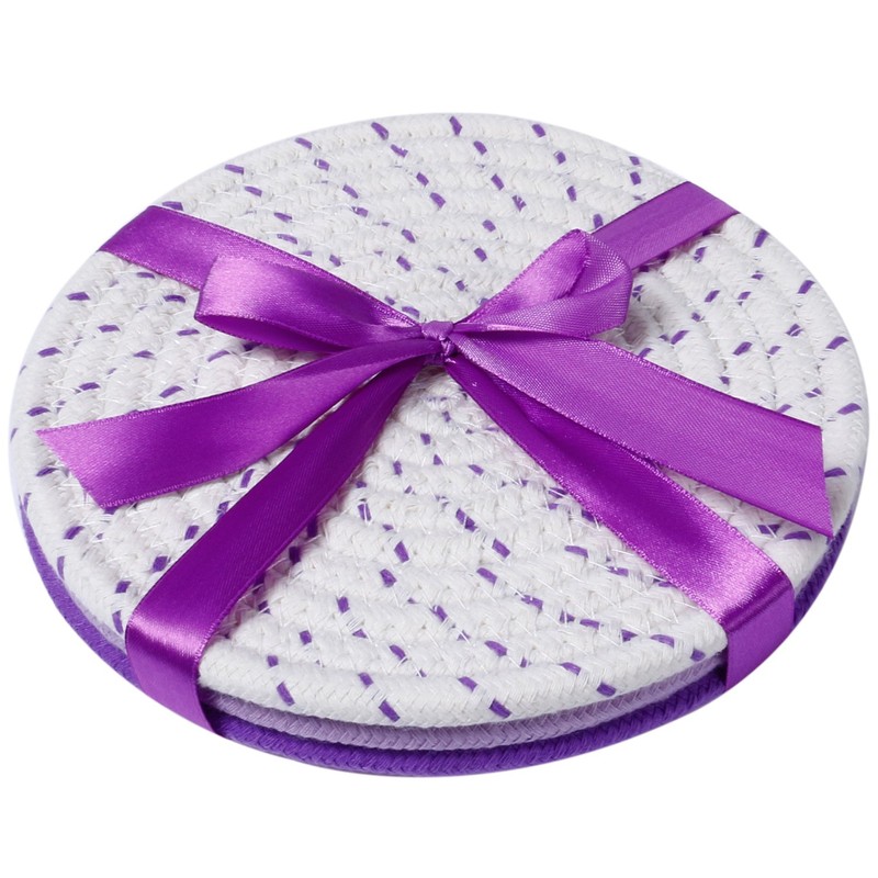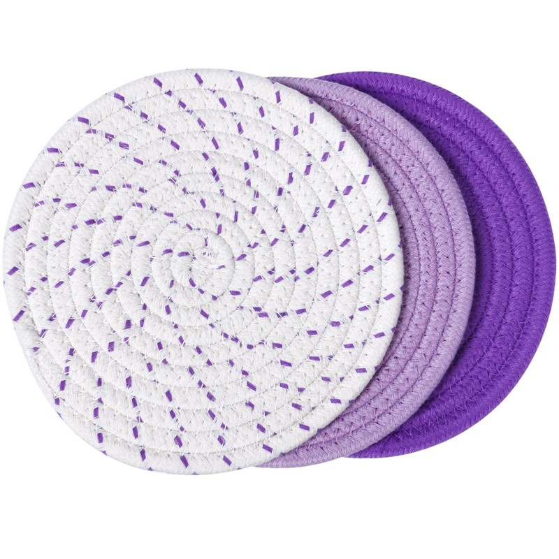 Lifaith 100% Cotton Thread Weave Pot Holders, Hot Pads, Pot Holders, Spoon Rest, Jar Opener & Coasters, for Cooking and Baking, Diameter 7 Inches, Round, Set of 3, Purple Set