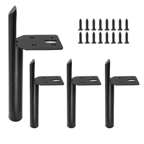 - 【What You Will Get】4 x Metal Furniture Legs + 16 x Mounting Screws. Height: 12.7cm / 5", Pipe Diameter: 2.54cm / 1", Plate Width: 7.5cm / 2.96", Plate Thickness: 0.3cm / 0.12". Each leg comes with the necessary screws, allowing you to quickly and effortlessly replace old or damaged legs.