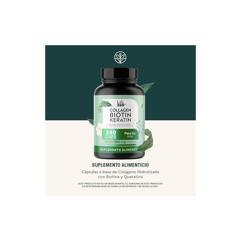 LIFE 360+ - LIFE 360+ Collagen Biotin Keratin | 200 Cápsulas | Biotina, Queratina y Colageno Hidrolizado | Suplemento Alimenticio en Cápsulas a Base de Colágeno con Biotina y Keratina. 🏆 Reconocido por su excelente relación calidad-precio. Construcción robusta y atención al detalle. 🏆 Recomendado por expertos. Ideal para quienes buscan lo mejor en calidad y estilo. Producto auténtico con satisfacción total asegurada. ¡No te quedes sin el tuyo y aprovecha esta oportunidad única!