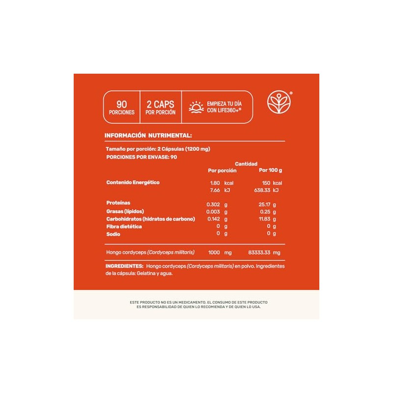 LIFE 360+ - LIFE 360+ Cordyceps | Extracto Puro de Hongo Cordyceps |1200mg, 180 Cápsulas | Suplemento Alimenticio a Base de Cordycep militaris en polvo. ✅ Diseño innovador que supera las expectativas. Tecnología avanzada y rendimiento superior. 💝 Perfecto como regalo especial. Ideal para quienes buscan lo mejor en calidad y estilo. Producto auténtico con satisfacción total asegurada. ¡No te quedes sin el tuyo y aprovecha esta oportunidad única!