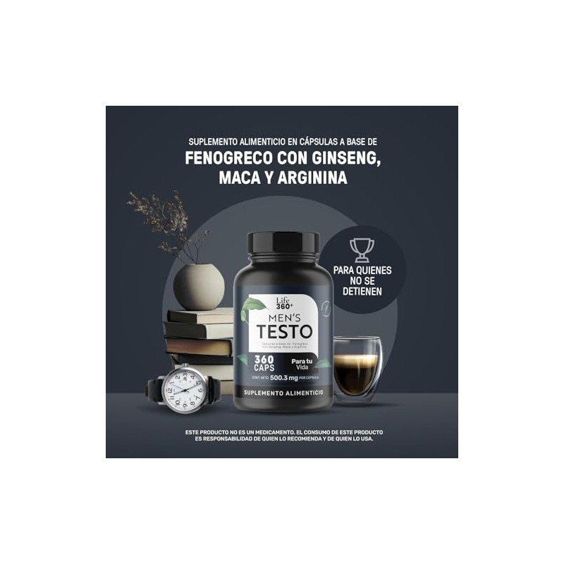 LIFE 360+ - LIFE 360+ Mens Testo | 360 Cápsulas | Maca Negra, Maca Roja y Maca Amarilla, L-Arginina, Zinc, Vitamina D, Magnesio, Ginseng y Guarana | Suplemento Alimenticio | 360 Cápsulas por Envase. 💯 Autenticidad y máxima durabilidad comprobadas. Materiales de alta gama y acabados premium. ⭐ Miles de reseñas positivas. Ideal para quienes buscan lo mejor en calidad y estilo. Producto auténtico con satisfacción total asegurada. ¡No te quedes sin el tuyo y aprovecha esta oportunidad única!