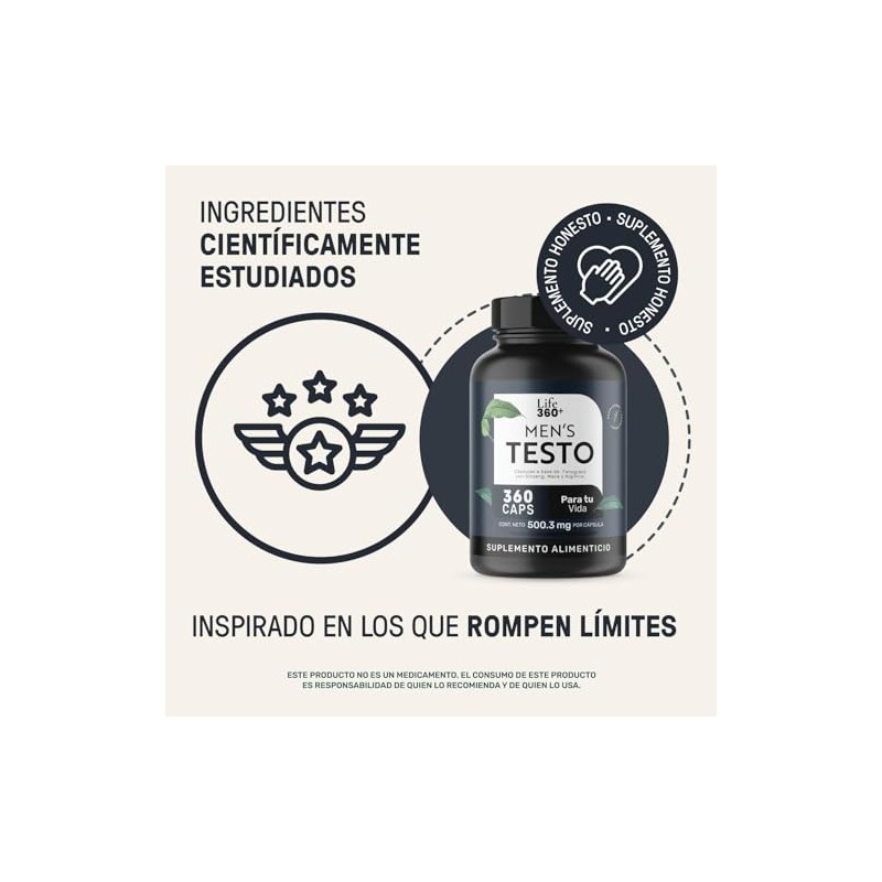 LIFE 360+ - LIFE 360+ Mens Testo | 360 Cápsulas | Maca Negra, Maca Roja y Maca Amarilla, L-Arginina, Zinc, Vitamina D, Magnesio, Ginseng y Guarana | Suplemento Alimenticio | 360 Cápsulas por Envase. 🚀 Producto más vendido con miles de clientes satisfechos. Diseño ergonómico y funcionalidad excepcional. ⭐ Miles de reseñas positivas. Ideal para quienes buscan lo mejor en calidad y estilo. Producto auténtico con satisfacción total asegurada. ¡No te quedes sin el tuyo y aprovecha esta oportunidad única!