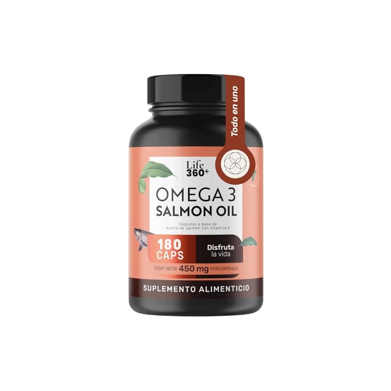 LIFE 360 Omega 3 180 Cpsulas Aceite Puro de Salmn con DHA y EPA Vitamina E (dl-a-tocoferol) Ingredientes Naturales Omega 3 Salmon Oil.