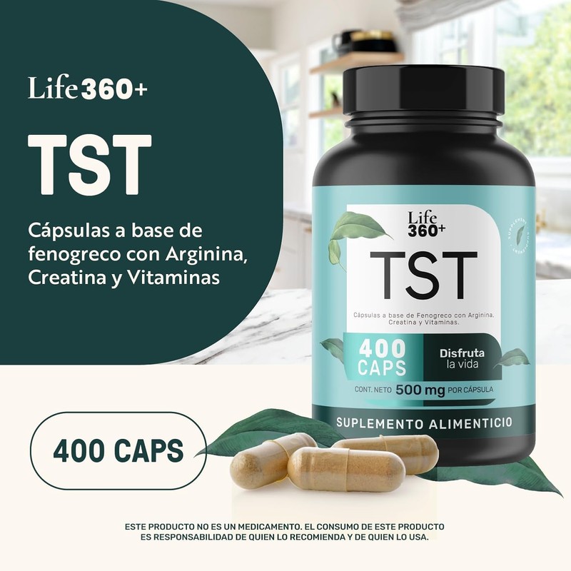 - LIFE360+ TST es un suplemento en cápsulas a base de fenogreco con arginina, creatina y vitaminas. LIFE360+ ofrece una amplia variedad de suplementos en formatos como cápsulas y polvos. LIFE 360+ se distingue por su compromiso con la calidad