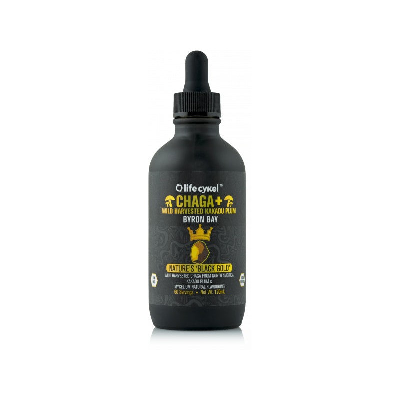 Ingredients: Filtered Water, Alcohol (20-24% v/v), Mushroom Flavour: Wild Harvested Dried Chaga (Inonotus obliquus) Sclerotia, Kakadu Plum Natural Flavour.