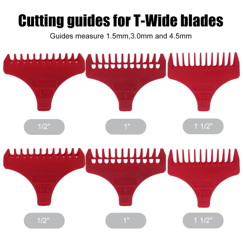 - Package includes: (2) Replacement for W-ahl Professional Set of 3 T Wide Trimmer Guides #3792 as pictured; Guides measure 1/16" (1.5mm), 1/8" (3.0mm) and 3/16" (4.5mm); Red in Color