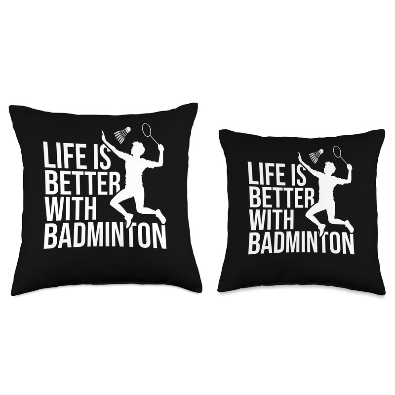 Life Is Better With Badminton Shuttlecock Badminton Player Throw Pillow