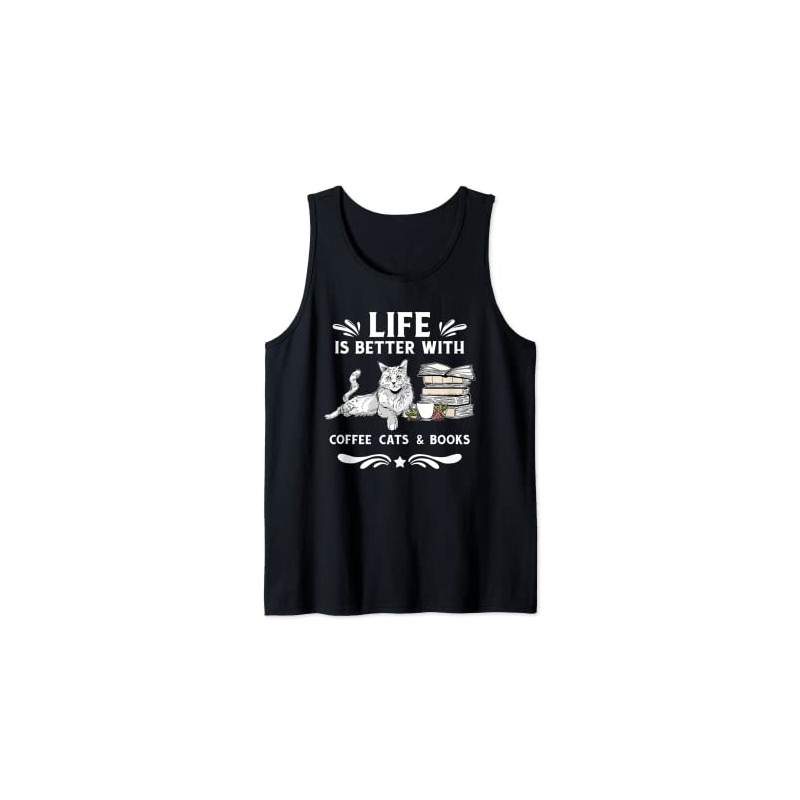 Life is Better With Coffee Cats and Books -Funny Cat Lover Tank Top