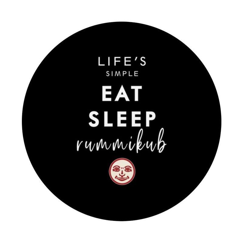 - A Rummikub design with the life philosophy "Life's Simple: Eat Sleep Rummikub" and a Rummikub Joker face.