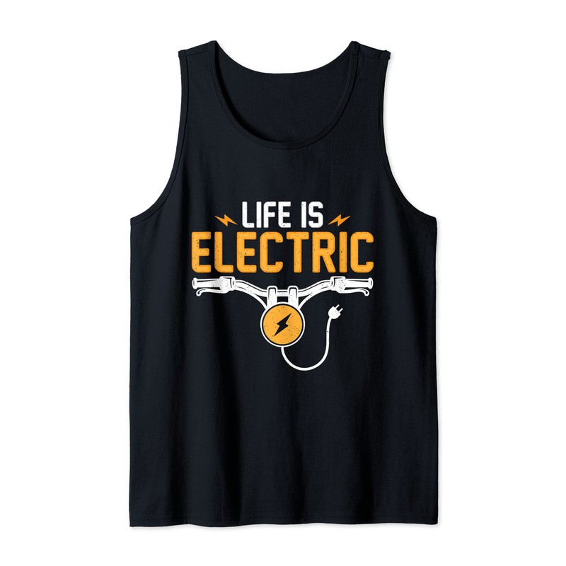 Life Is Electric Funny E-Bike Electric Bicycle Biking Mens Tank Top