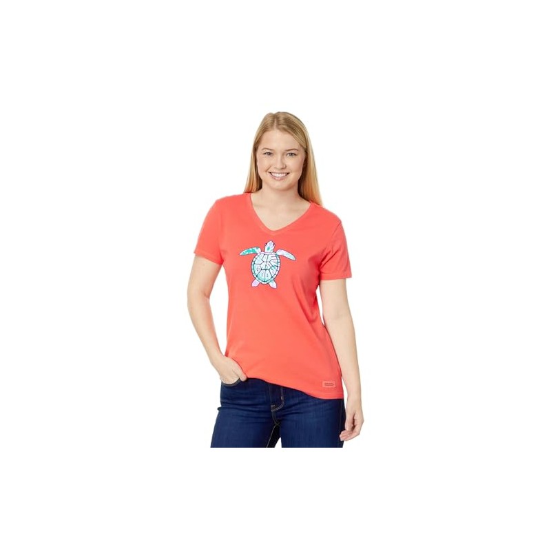 Life is Good LIG Turtle Shell Tie-Dye Short Sleeve Crusher-Lite™ Vee Mango Orange XS (US 0-2)