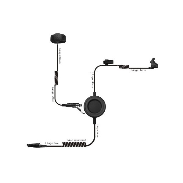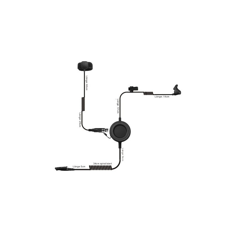 The additional small PTT button (dimensions 18.4 x 18.2 x 8 mm) with soft and professional button is securely and firmly attached to the finger by Velcro and guarantees comfortable wearing and quick access to the talk button. The cables are sufficiently long and very flexible. An angled plug with the appropriate configuration for your radio guarantees reliable use in any environment.