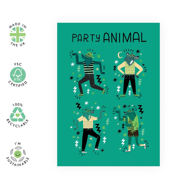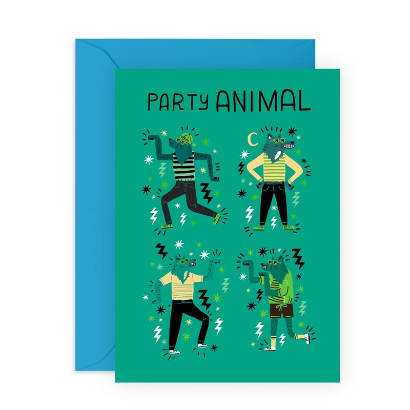 Life of the Party Birthday Card - 'Party Animals Wolves' - Gifts for Him, Men, Best Friend, Colleague, Coworker, Cousin - Dance Moves - Comes with Fun Stickers