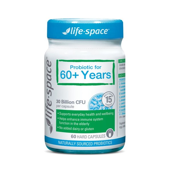 The Life Space Probiotic For 60+ Years Cap X 60 is specifically formulated high in the 'Bifidobacterium' types of live beneficial bacteria, to provide Immune, Bowel and Bone health benefits to those over the age of 60 years.