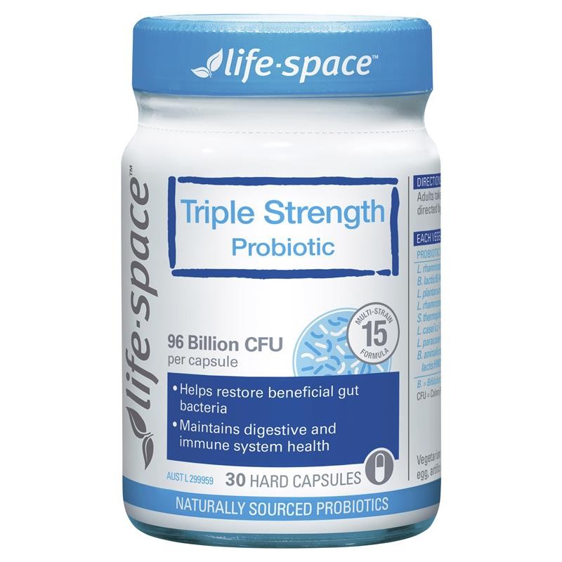 The digestive system microbiome contains a diverse range of bacterial species. Life-Space Triple Strength Probiotic contains 15 strains of beneficial bacteria and supports a healthy digestive system.