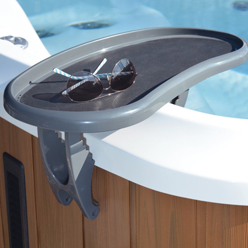 - Tray table comes with adjustable legs to allow the tray table to fit securely to most spa and hot tu