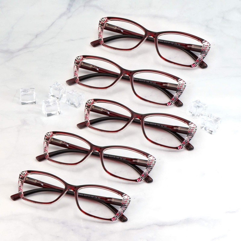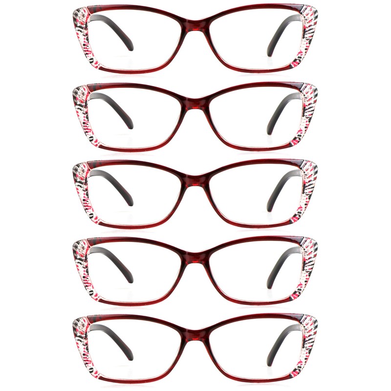 LifeArt 5 Pairs Reading Glasses, Blue Light Blocking Glasses, Computer Reading Glasses for Men and Women, Fashion Eyewear Frame (5 Red, +2.50 Magnification)
