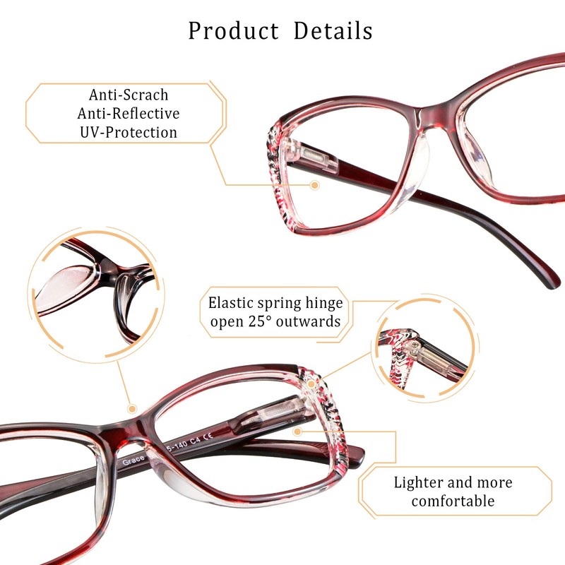 - Ultra-transparent lens with high light transmittance to prevent color distortion, 7-layer anti-reflective coating to minimize glare from digital screens.