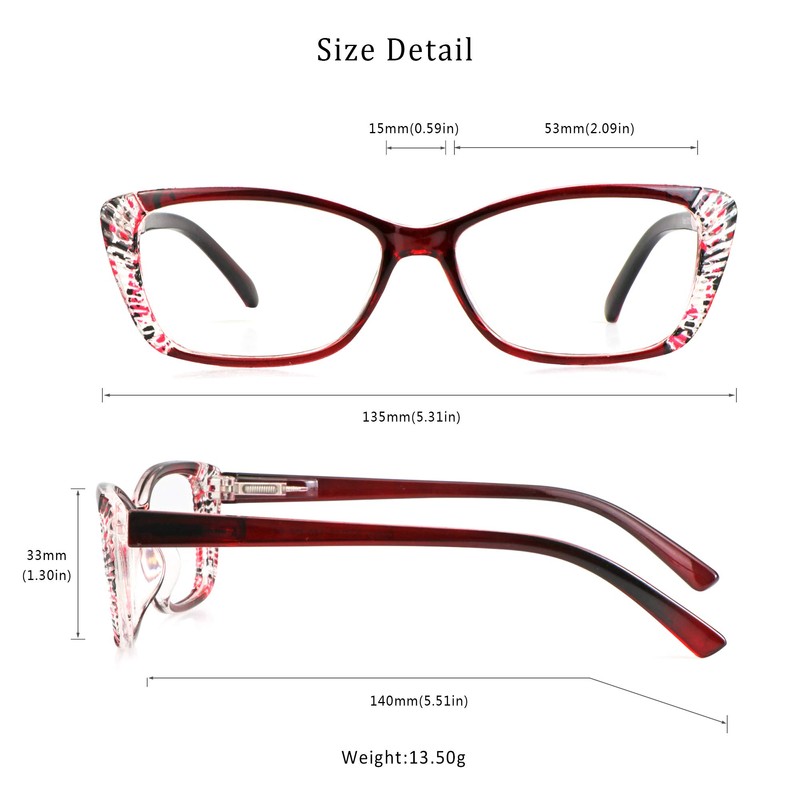 - Classic rectangular frame design, ultra-lightweight, universal size fits most face shapes.