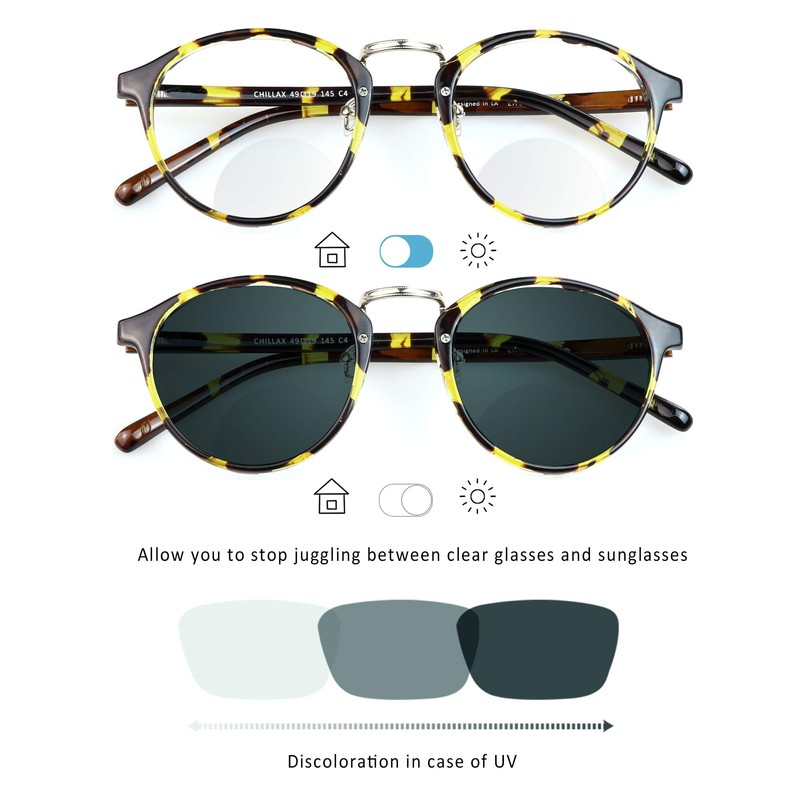 - Photochromic technology darkens the lens automatically to help you adapt to changing light.