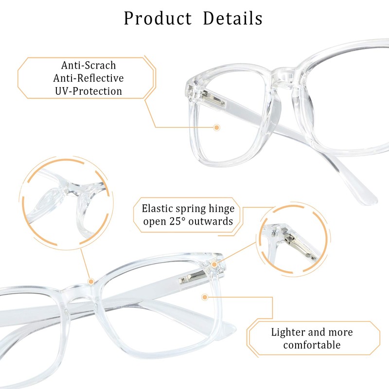- Classic square frame design, ultra-lightweight, universal size fits most face shapes.