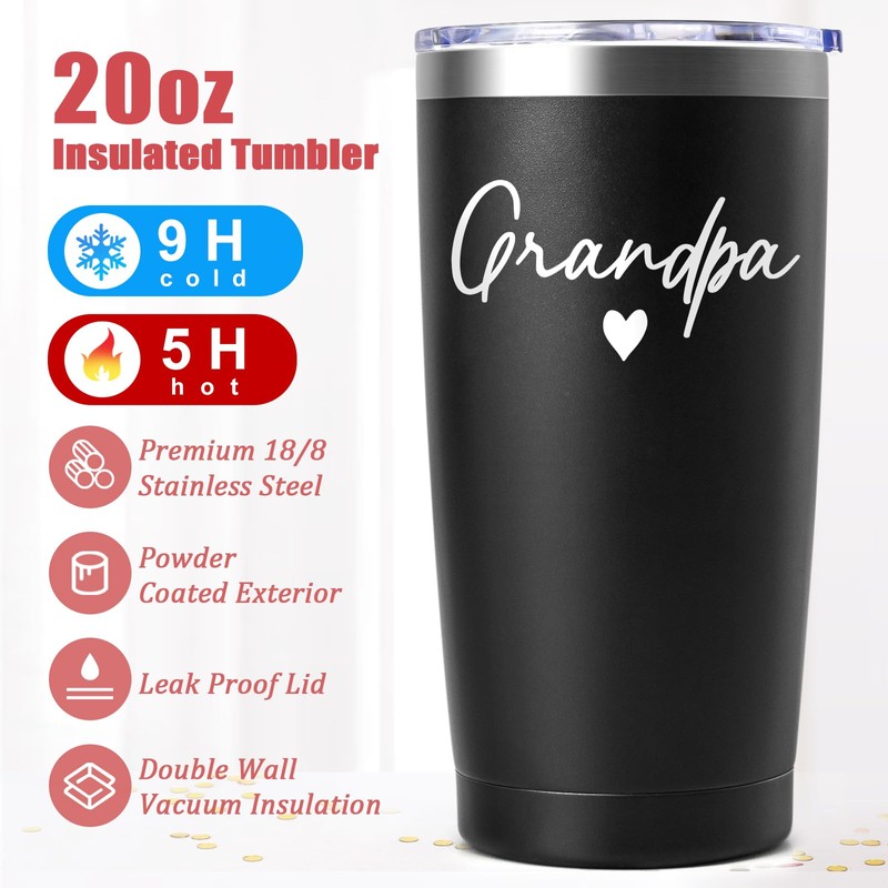 - Double Wall Vacuum Insulation: Grandma grandpa gifts adopt the technology of double wall vacuum insulation, insulated tumbler can keep hot for 5 hours, cold for 9 hours, enjoy the ideal temperature of your drink at any moment, whether you're at home or on the go