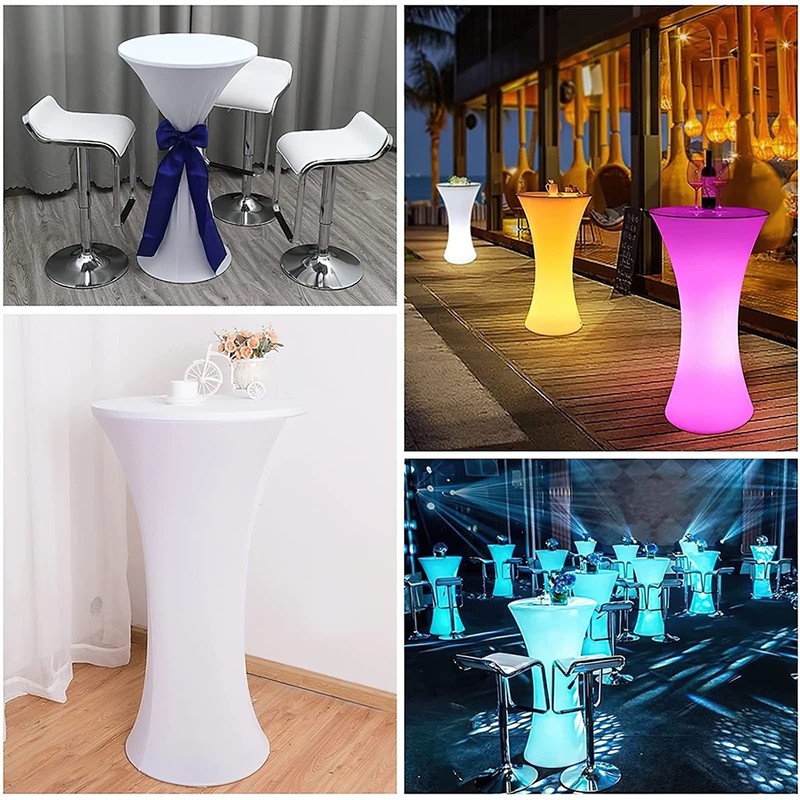 - 【Stretch Bar Table Cover】You will receive 1 pack of stretch cocktail tablecloths with square corners. These tablecloths have high elasticity, reduce installation time and can protect tables from dirt, dust and scratches. Suitable for cocktail tables size: 60 cm diameter x 110 cm height, 80 cm diameter x 110 cm height. Tablecloth securely in place without slipping and comes in a variety of colors.