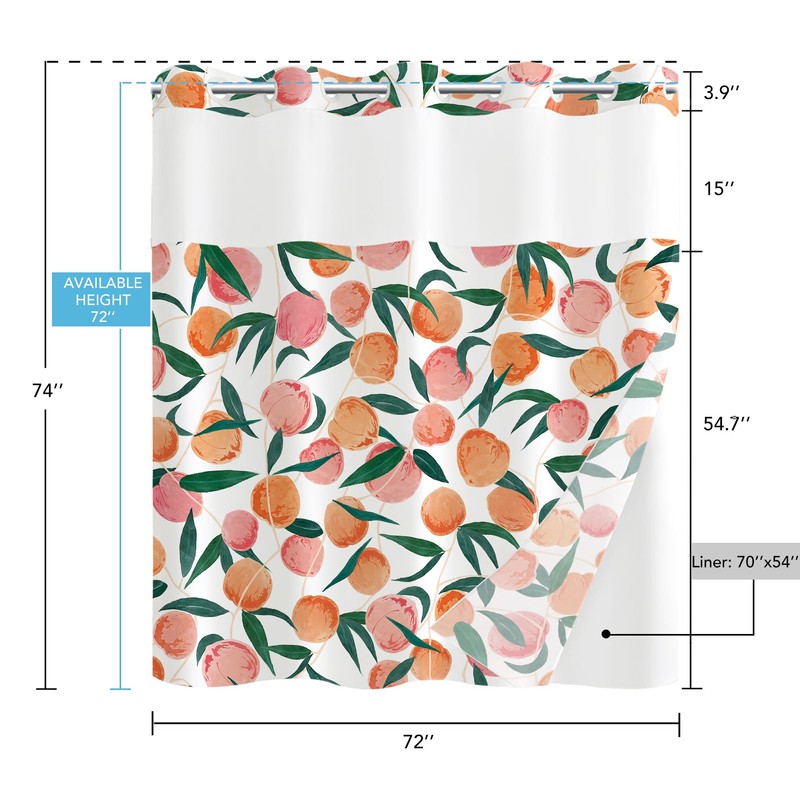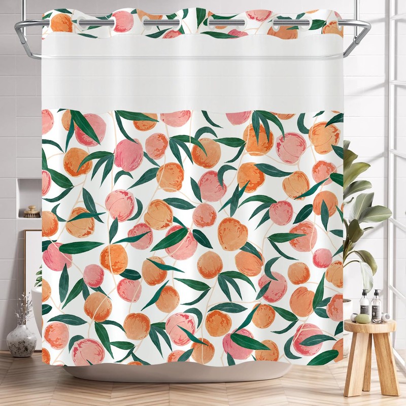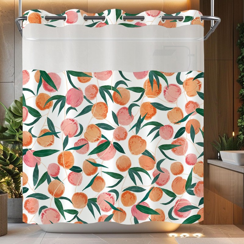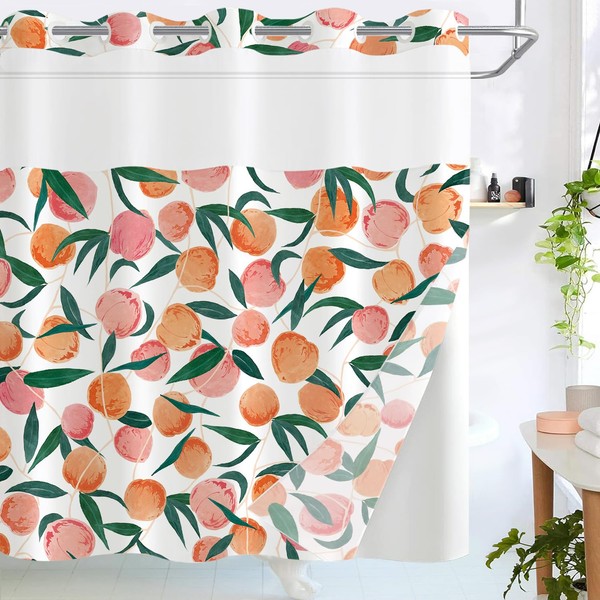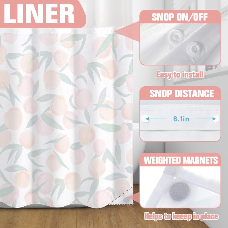 - 【Premium Dual-Layer Design】Crafted with a two-in-one system, this shower curtain features a stunning Sweet Peach Print outer fabric curtain and a removable, waterproof inner liner. The outer layer is made from a sheer, semi-translucent fabric that lets light in, so you won't lose your view while showering. The inner liner is fully waterproof and easy to replace, ensuring long-lasting performance.
