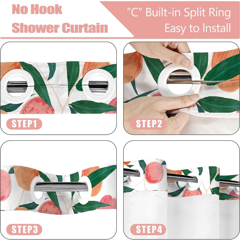 <p>Experience a Soft, Inviting Ambiance. Brighten your bathroom with the charming appeal of the Neasow Sweet Peach Print No Hook Shower Curtain. The delicate, peachy blush pattern instantly creates a soft, inviting atmosphere, making every morning routine