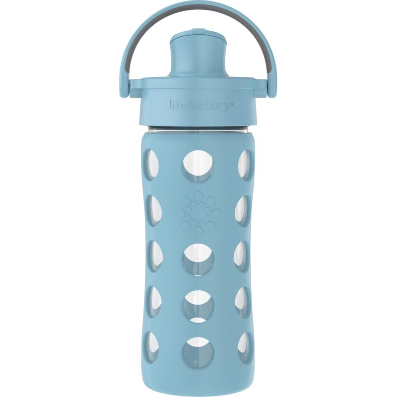 Lifefactory 12-Ounce Glass Water Bottle with Active Flip Cap and Protective Silicone Sleeve, Denim