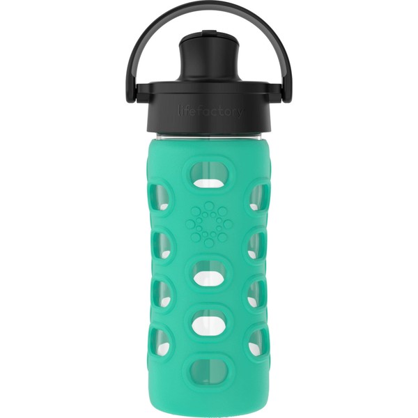Lifefactory 12-Ounce Glass Water Bottle with Active Flip Cap and Protective Silicone Sleeve, Kale