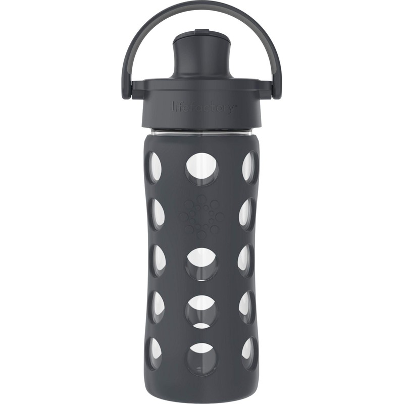 Lifefactory 12-Ounce Glass Water Bottle with Active Flip Cap and Protective Silicone Sleeve, Carbon