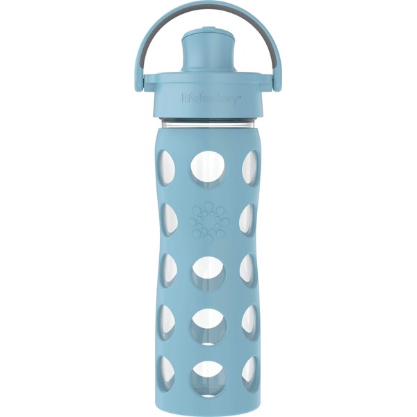 Lifefactory 16-Ounce Glass Water Bottle with Active Flip Cap and Protective Silicone Sleeve, Denim