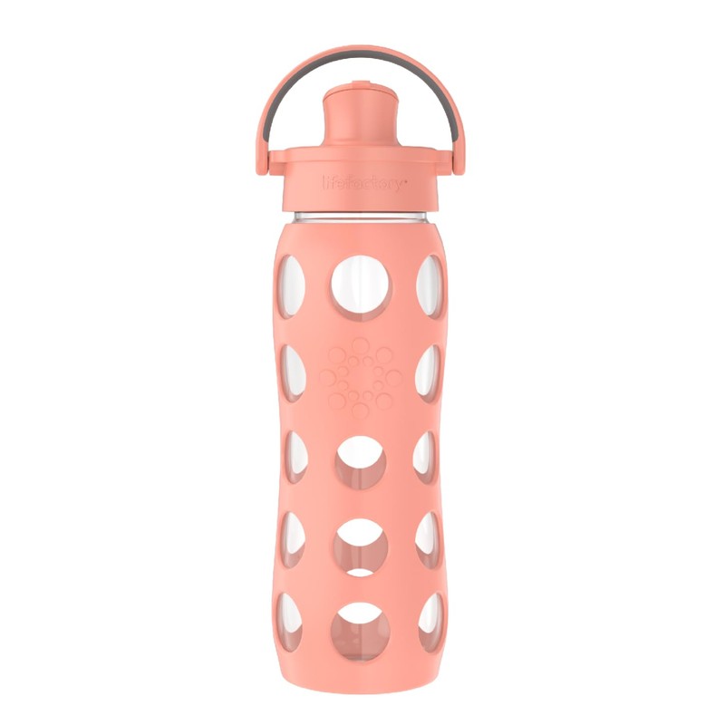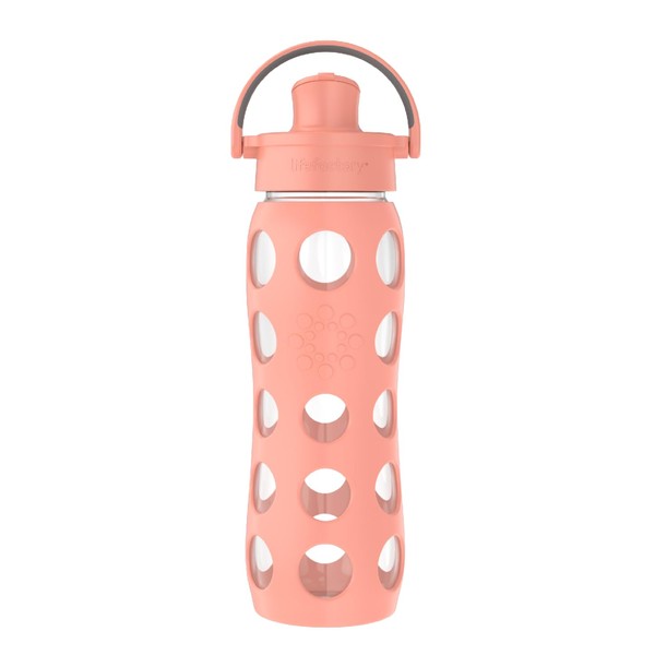 Lifefactory 22-Ounce Glass Water Bottle with Active Flip Cap and Protective Silicone Sleeve, Cantaloupe, 22oz