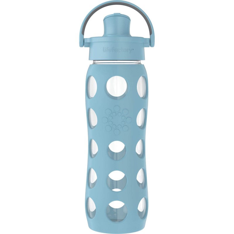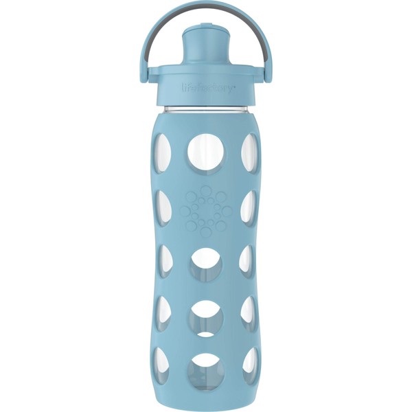 Lifefactory 22-Ounce Active Flip Cap Glass Water Bottle, 22oz, Denim