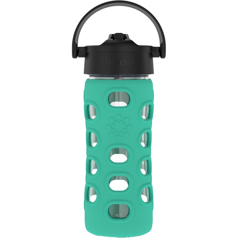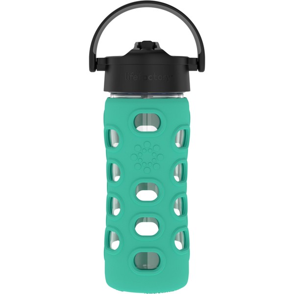 Lifefactory Glass Water Bottle with Pivot Straw Cap, 12 Ounce, Kale