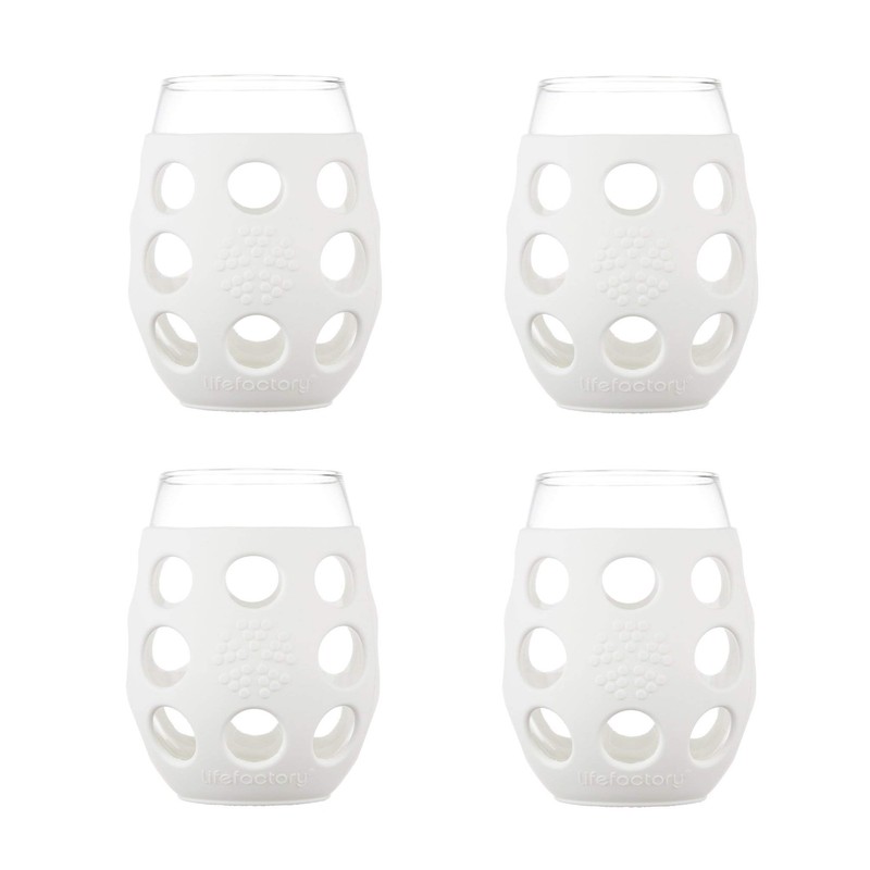 Lifefactory Wine Glass with Protective Silicone Sleeve, 4 Count (Pack of 1), White