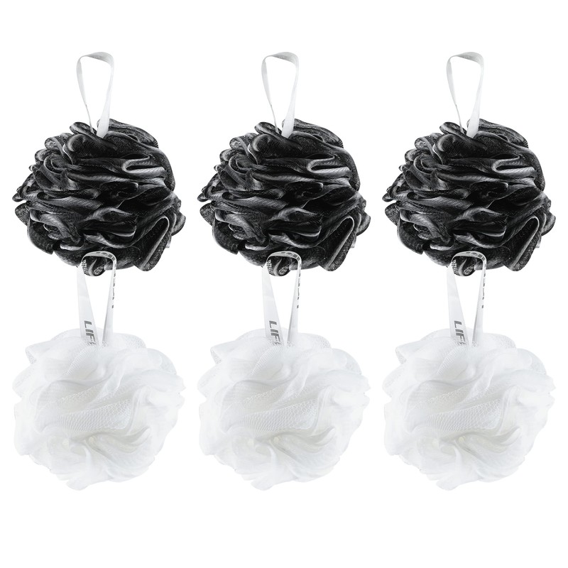• Money Saving 6 Pack: 3 x White, 3 x Black. These stylish body puffs is large at 60g and super soft, making it an ideal bath and shower accessory that will also look great in the bathroom, meet males, females & families color preferences and make it easy to distinguish. You will be in a good mood when you see these lovely colors.