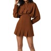 LifeHe Women Hooded Sweatshirt Dress Drawstring Pullover Tunic Tops Pleated Tennis Mini Dresses Brown