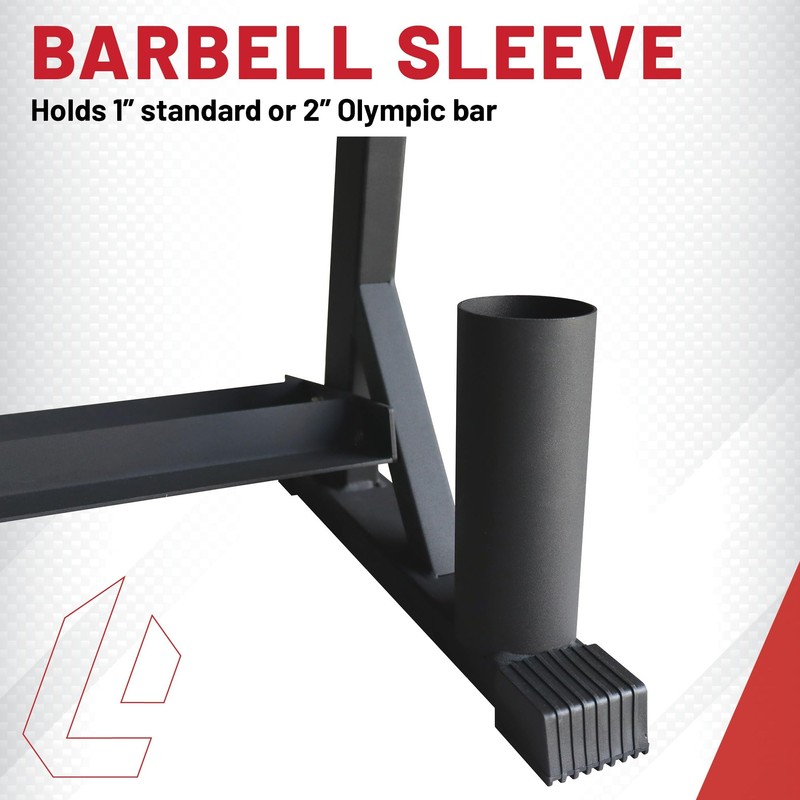 - Store Everything: This weight rack includes a hook for ropes and bands, as well as a barbell storage sleeve and weight plate storage posts, making it the ideal gym storage rack.