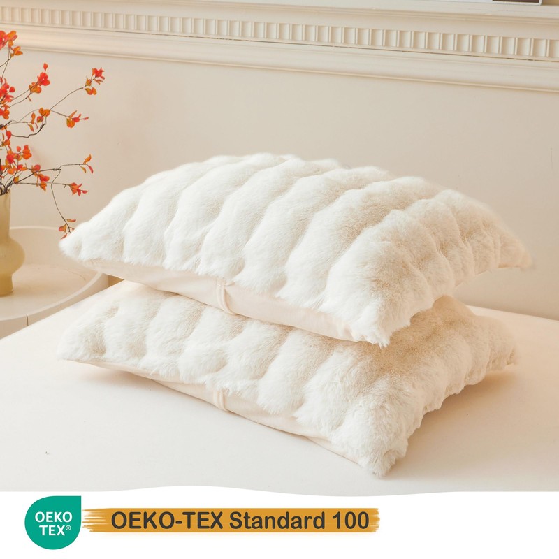 - Buttery Soft Materials: The front of our pillowcases is crafted from fluffy synthetic rabbit fur that has been OEKO-TEX certified. This certification guarantees that the material is hypoallergenic and environmentally friendly. The reverse side is made of soft velvet, delivering a sumptuously luxurious feel. The faux fur is thick, shaggy, and plush, offering a delightfully warm and cozy touch.