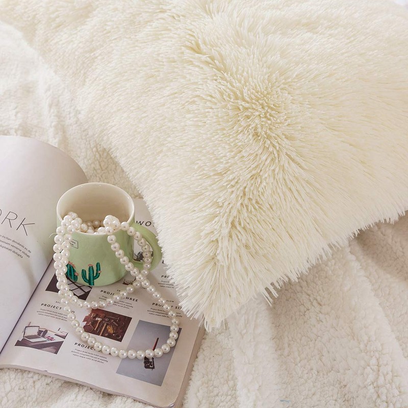 LIFEREVO 2 Pack Shaggy Plush Faux Fur Pillow Shams Fluffy Decorative Pillowcases Zipper Closure (Light Beige, King)