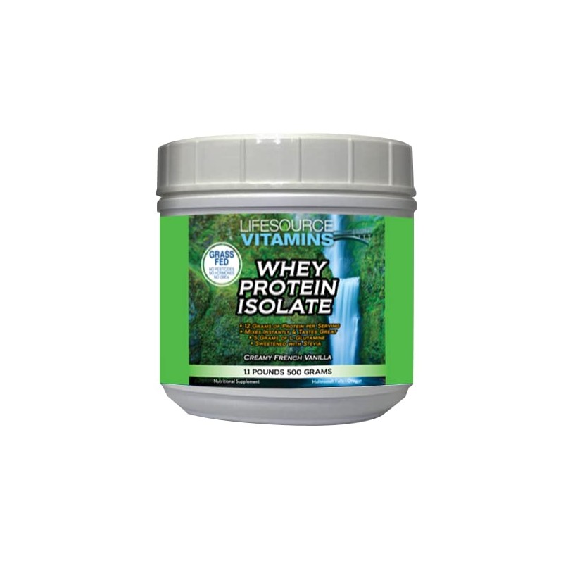 LifeSource Vitamins Grass Fed Whey Protein Isolate in Creamy French Vanilla flavor is a high-quality protein supplement designed to support muscle growth and recovery. Here are some key features: Pure and Natural: Made from grass-fed cows, this whey protein isolate is free from hormones, pesticides, GMOs, antibiotics, and rBGH. High Protein Content: Provides 25 grams of protein per serving, helping to build and repair muscle tissue. Low in Carbs and Fat: Ideal for those looking to maintain a lean physique. Sweetened with Stevia: Uses natural stevia for sweetness, avoiding artificial sweeteners like sucralose or fructose. Easily Digestible: Contains a superior amino acid profile, including high levels of BCAAs, which are quickly absorbed by the body. Cold-Processed: Uses micro-filtration technology and is dried at cold temperatures to preserve protein integrity. This protein powder is perfect for anyone looking to enhance their protein intake with a clean, natural product.