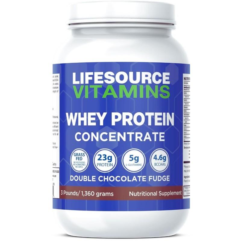 Enhance your nutrition with LifeSource Vitamins' Grass Fed Whey Protein Concentrate, available in a rich Chocolate flavor. This 3 lb powder is sourced from grass-fed cows raised without hormones, pesticides, GMOs, antibiotics, or rBGH, ensuring you receive the purest protein possible. Each serving provides 23 grams of high-quality whey protein concentrate, perfect for muscle growth, recovery, and overall wellness. Sweetened naturally with Stevia, this protein powder offers a delicious and healthy way to meet your protein needs without added sugars. Ideal for athletes, fitness enthusiasts, or anyone looking to boost their daily protein intake. Key Benefits: High-Quality Protein: 23 grams of pure whey protein concentrate per serving. Grass-Fed Source: Derived from cows raised without hormones or antibiotics. Natural Sweetener: Sweetened with Stevia for a delicious taste without added sugars. Versatile Use: Ideal for post-workout recovery, meal replacement, or a protein boost anytime. Experience the superior quality and taste of LifeSource Vitamins' Grass Fed Whey Protein Concentrate. Fuel your body with the best and enjoy the rich, indulgent flavor of chocolate.