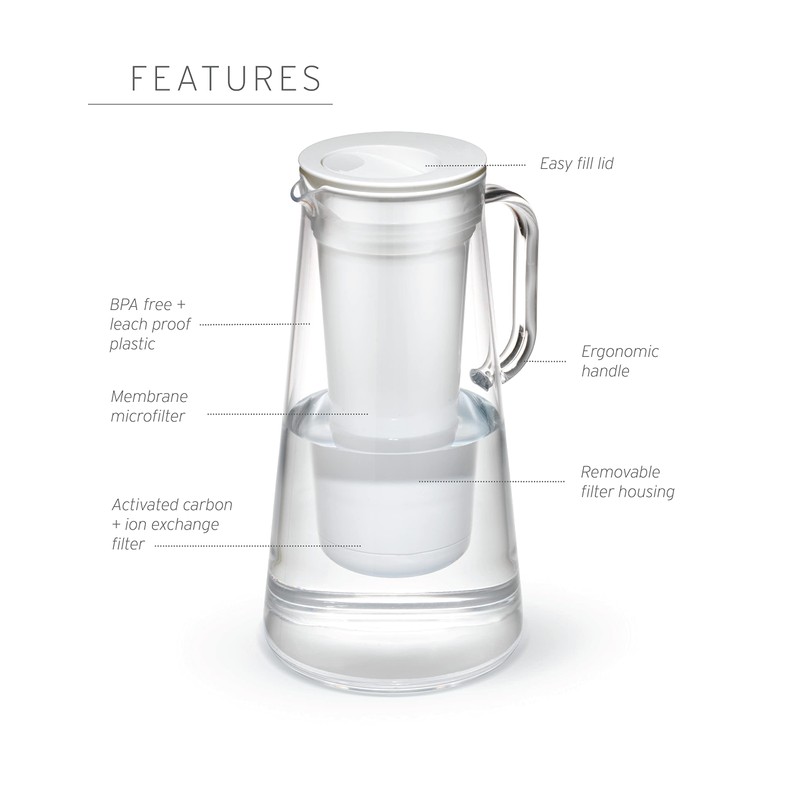 - Filtration that actually does stuff. The only water filter pitcher that removes bacteria and parasites, in addition to microplastics.