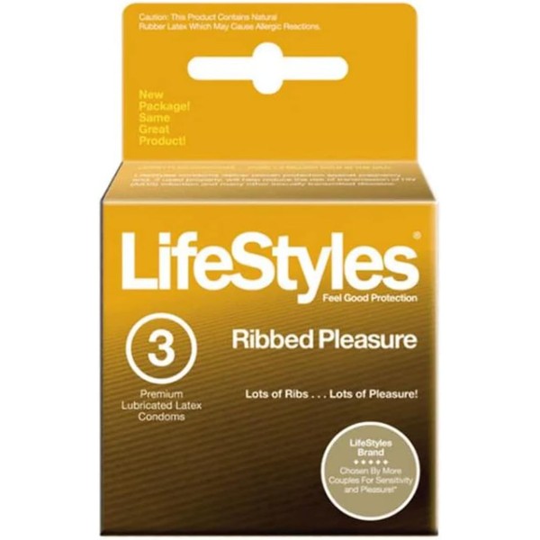 Height: 1.000 Length: 4.000 Diameter: 2.750 Great protection shouldn't get in the way of great sex! Ask anyone, because more couples choose Lifestyles brand condoms for sensitivity and pleasure. And when it comes to shared satisfaction, the Ribbed Pleasure style is the rubber of choice. Lots of ribs equal lots of pleasure for you and your partner when you unroll one of these. They weren't kidding when they said it's, "Feel good protection." Each package includes three condoms.